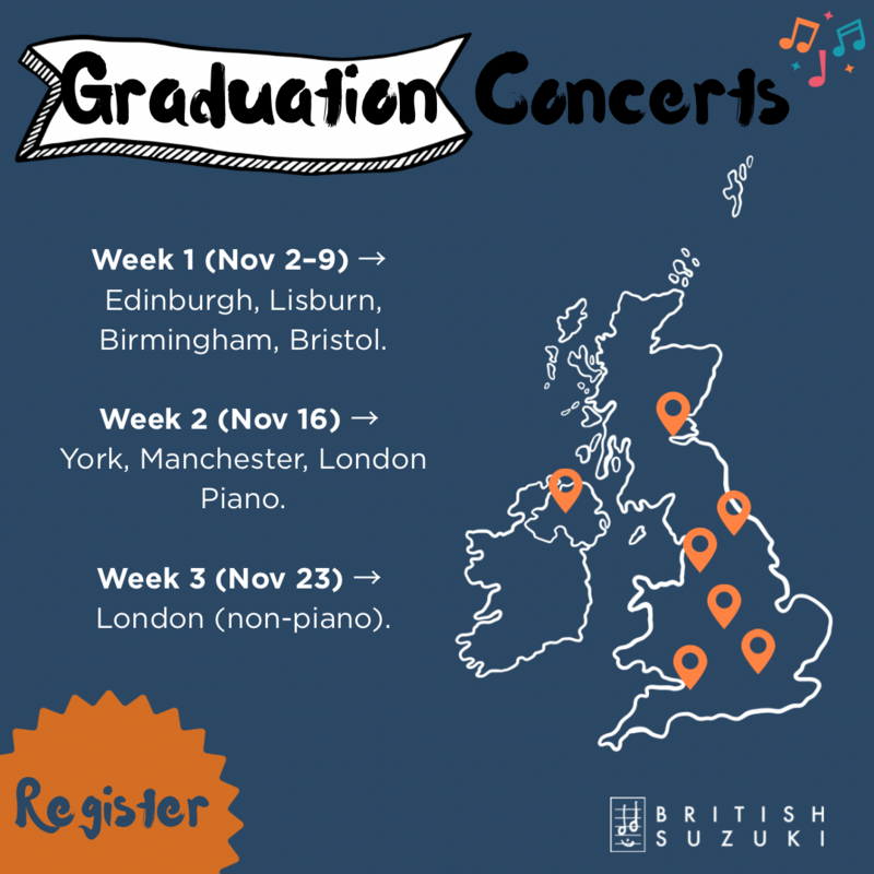 London Graduation (non-piano): 23 November, Duke's Hall, Royal Academy of Music. Morning rehearsals, concert at 2pm. Book here until 12 October 2025.