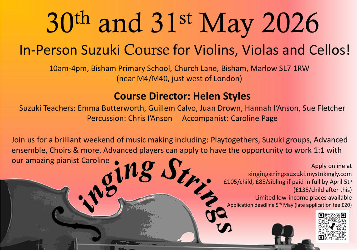 Join us for Singing Strings 2026 — a fantastic in-person Suzuki weekend for violins, violas, and cellos! 🎶